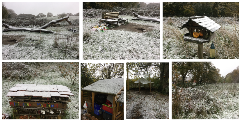 Wintery weather arrived this morning with plummeting temperatures; a brisk cold wind, followed by unexpected snowfall! The Beyond the Gate site looked glorious with the light dusting of snow.