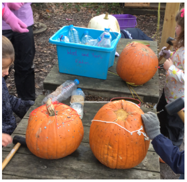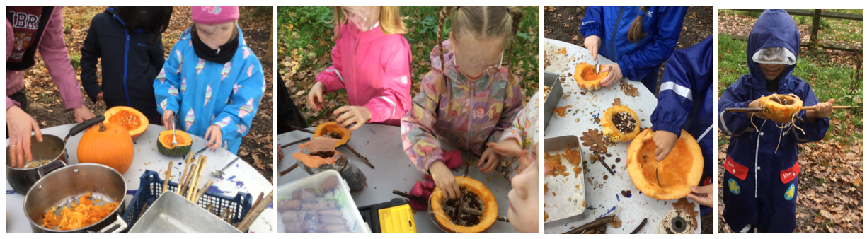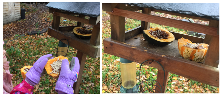 loween pumpkins from the local community which otherwise would have been thrown away. She supported children in turning these into bird feeders. The children discussed why we need to start feeding the birds in the Autumn and why we should not leave pumpkins on the floor in the woodlands.