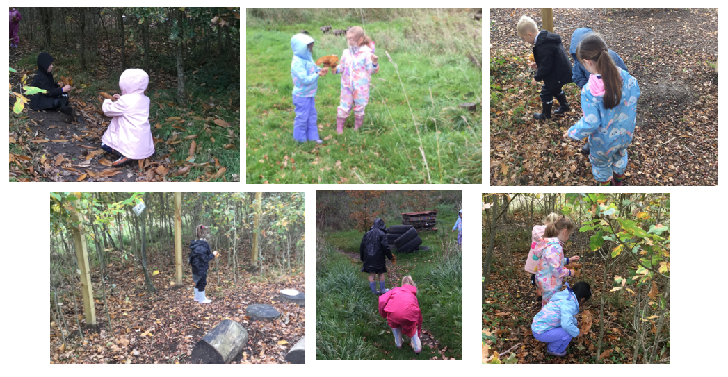After that, each child received a stick, which they turned into Fredrick’s tail by attaching plenty of autumn leaves. This part of the activity allowed the children to explore different parts of the site as they searched for leaves, all while staying engaged with their task. They enjoyed discovering new areas and collecting leaves in various shapes, colours, and sizes.