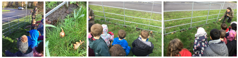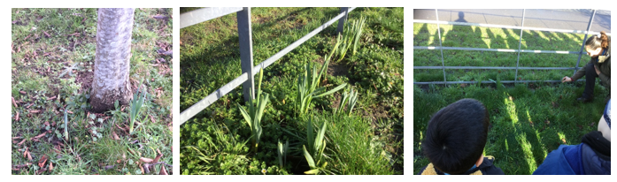 To begin their Beyond the Gate sessions this week, the Year 2 classes visited the front of the school grounds to check on the daffodil bulbs they planted in the autumn.