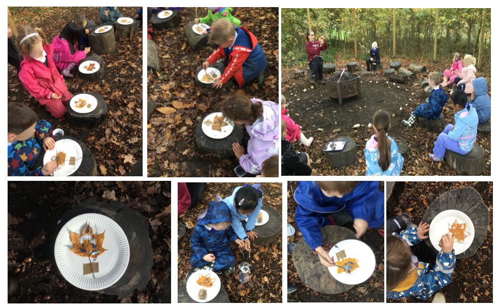 Year 2 welcomed October by enjoying the autumn weather and using the natural Autumnal materials found on site. Wednesday was dry, while for the Friday classes it was drizzly.