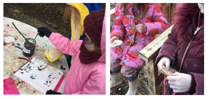 We also observed many wonderful examples of children demonstrating teamwork skills. One pair of boys worked together to carry a very heavy bucket of water—still exactly where they had hidden it the week before!—across the boggy ground. In another class, a group of children collaborated brilliantly to balance branches as they constructed a den.