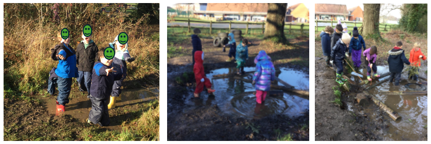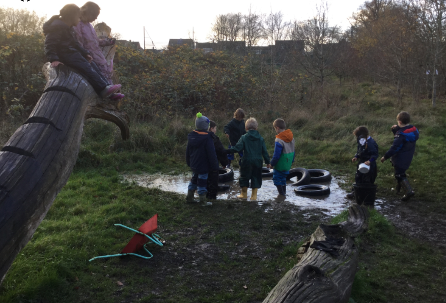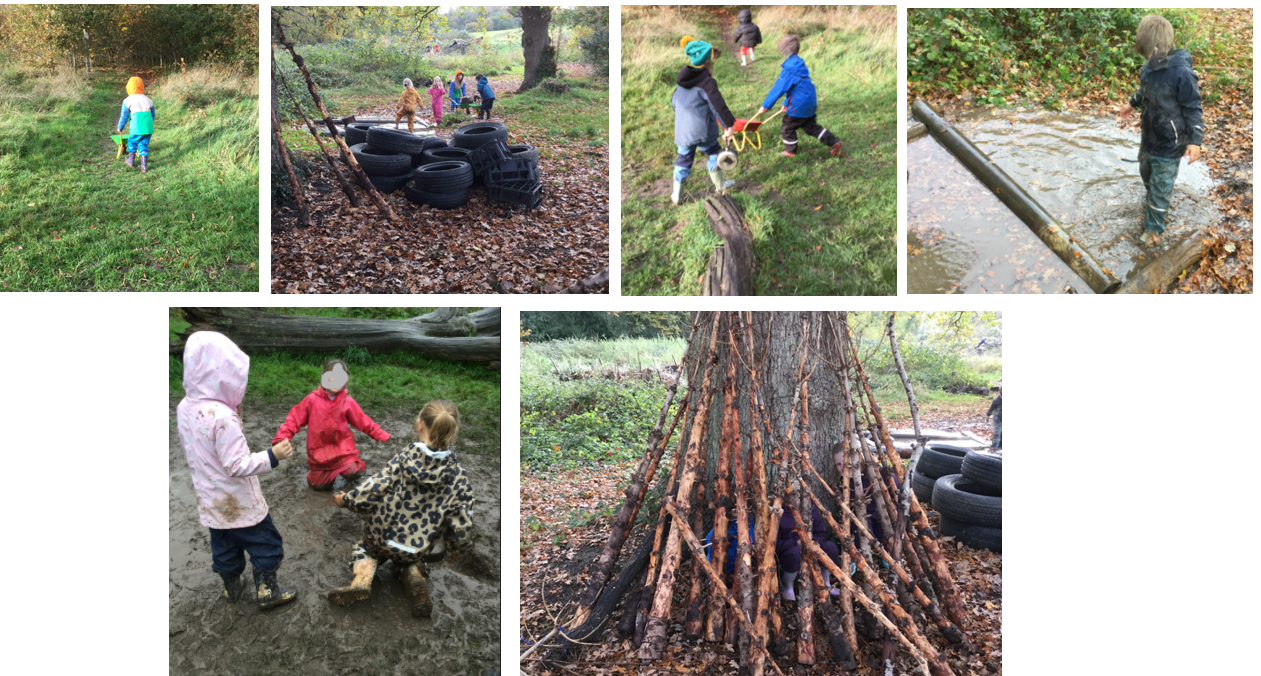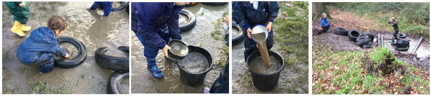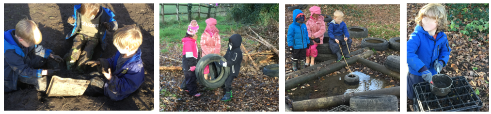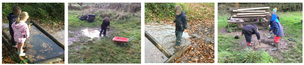 Because of all the September rain we have been having, the natural pond was full of water today. Many children love the opportunity to play with the water in different ways and are always creative with the use of loose part equipment. Through engaging in play this way, the children use their imaginations, problem solve and practically experience science concepts. Many boots were full of water by the end of the session (we hope the children had spare socks with them!).