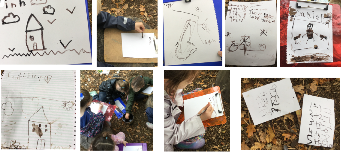 Mrs Dear had put up a vertical board with mud and paintbrushes and some children creatively drew mud pictures.