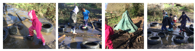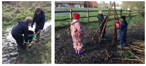 For their final, festive themed, session of the Autumn Term, the milder than normal weather continued and the Year One classes had lots of fun playing around the very muddy site!