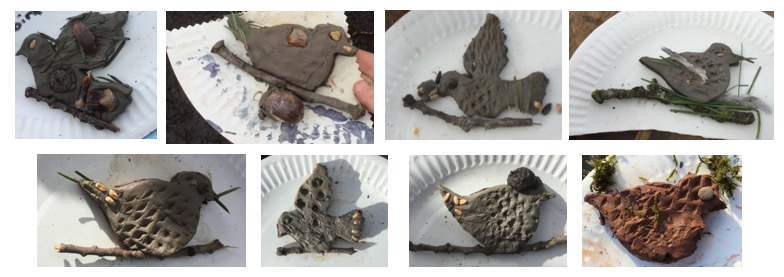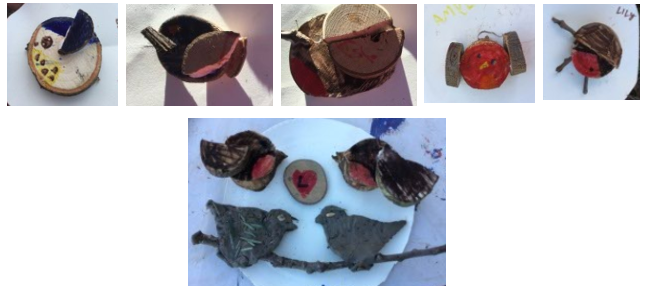 Therefore, the children could choose to complete some bird-themed art craft and woodwork activities as optional activities. One activity was to use clay to create a clay bird. The children were encouraged to use foraged items to create texture on the clay and to add detail and features to their creative work.