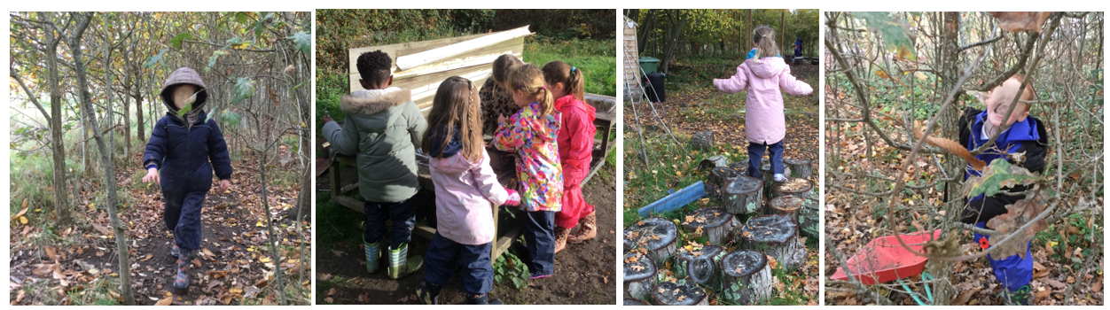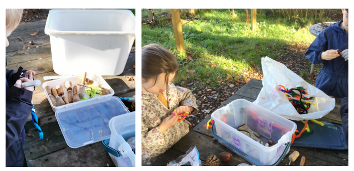 The children spent their time playing freely and exploring, taking advantage of the loose part equipment. Our site has changed considerably since their last visit in Year R back in May; autumn rain has brought mud and puddles, while fallen leaves offering a different sensory experience.