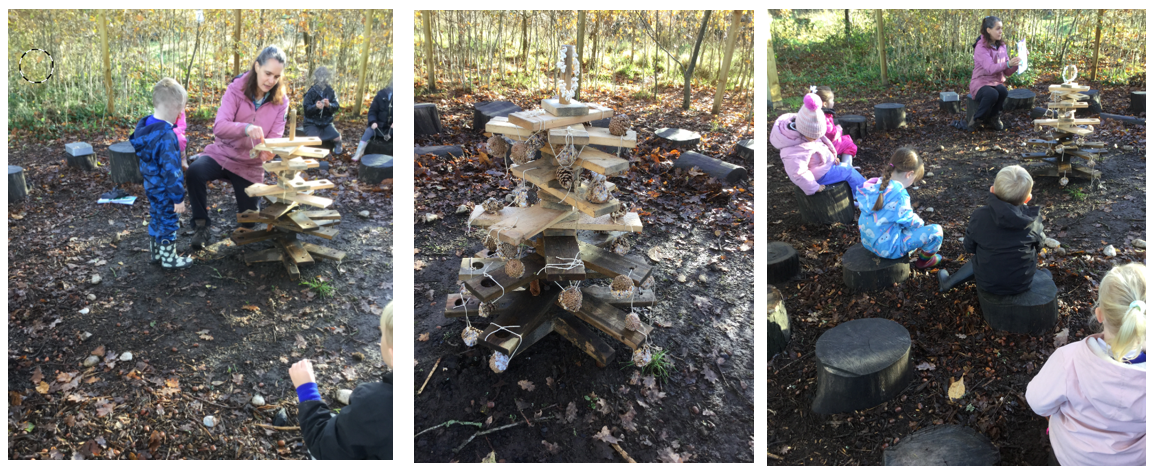 As each child added their pinecone to the wooden tree, Mrs Dear shared the story “The Amazing Christmas Tree” This tale, written by a local Forest School Leader, tells of a boy who decorates a pine tree in the forest using edible ornaments. Night after night, these decorations vanish, puzzling the boy—until he stays up one evening and discovers birds and animals enjoying the treats. We hope our own decorations will bring joy to wildlife in the same way!