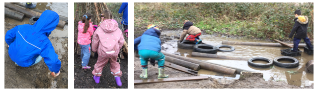 Of course, as per the Forest School ethos, there is no expectation for children to complete the adult-led activities, so the children continued to thrive playing around the even muddier and squelchier site!