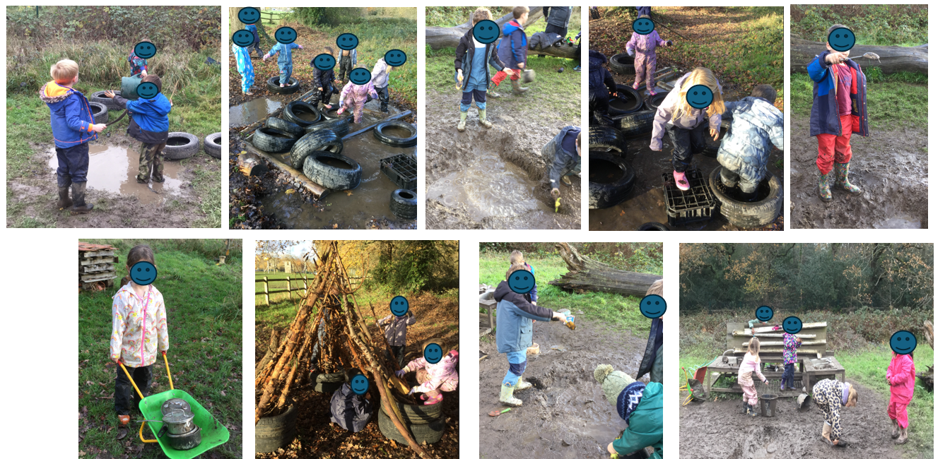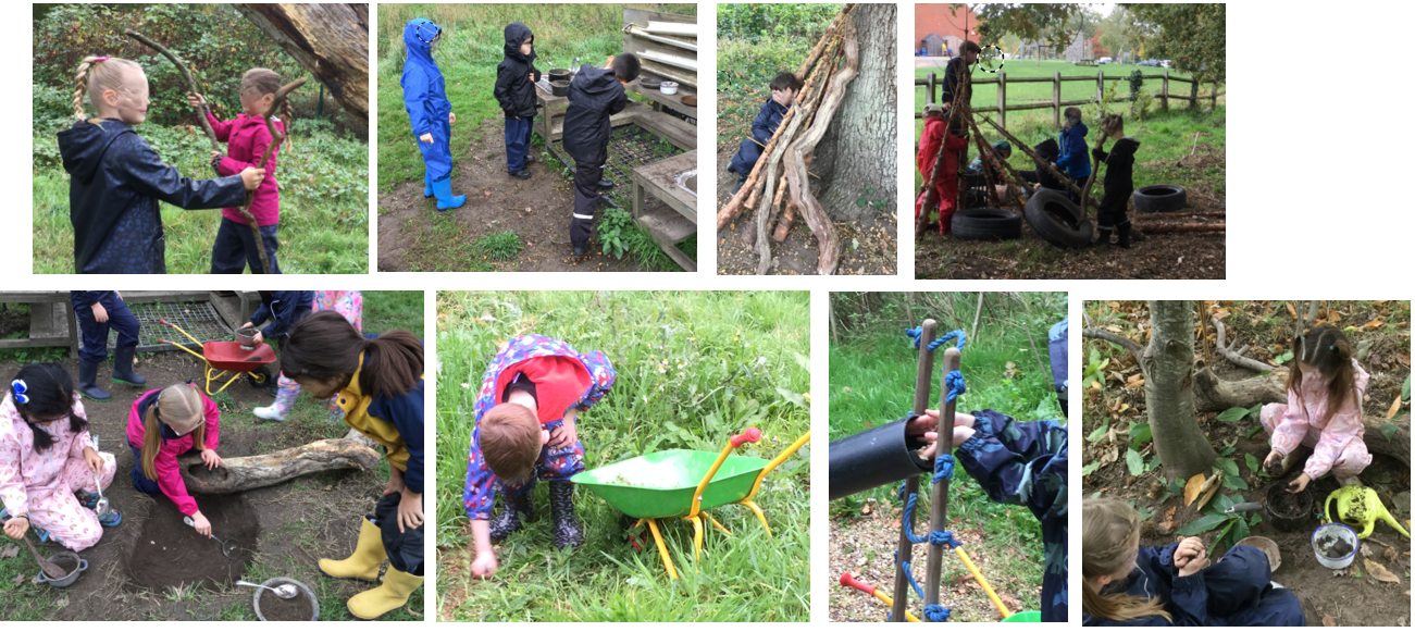 The Year One children had a great time on our wet and muddy site this week, especially Friday when it rained all day. Wearing their waterproof gear, they explored the whole area, staying active and enjoying themselves. They loved playing in the mud and water, taking advantage of the site’s conditions, and showed that they understood how to manage risks and play safely.