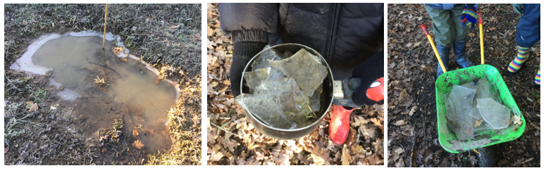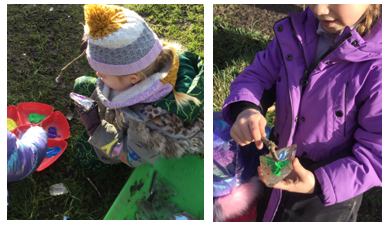 Ice always provides a new and rich resource for children to explore and experience. They relish breaking and collecting as much ice as they can!