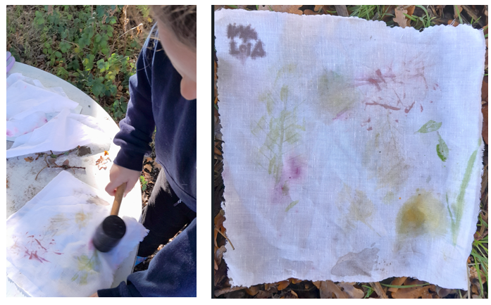 This child, asked to have the mallets and materials to do some Hapa Zome printing with leaves. It was great to see her experimenting with how different Autumn Leaves worked. Inspired by her idea, a few other children tried this as well.