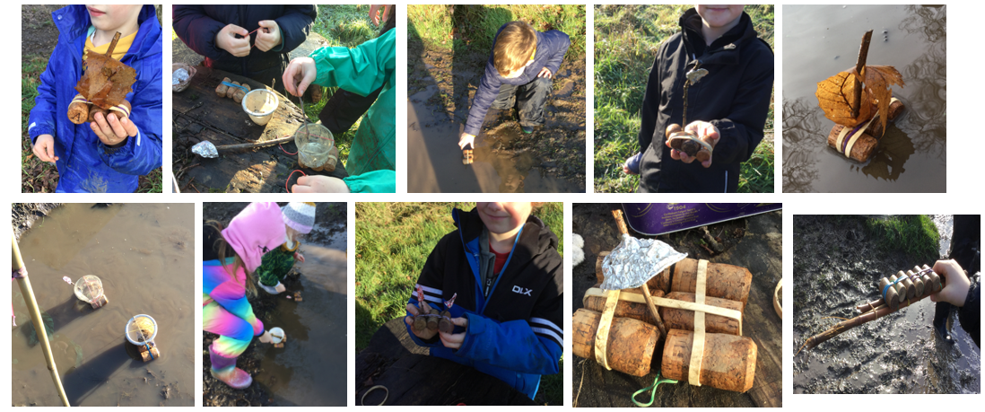 Despite the overcast skies staying dry on Friday for Kingfisher and Owl classes, the previous day’s rain left plenty of puddles across the site—perfect for some creative fun! As an optional activity, Mrs Dear provided a range of materials for raft and boat building.