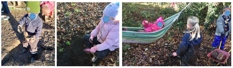 As it was a cold day for Deer, Badger and year one squirrels, keeping moving and active was important. There was lots of den building, digging, climbing and rocking in the hammock.