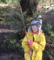 A few children also chose to learn—or practise—using the loopers to cut branches from the Christmas tree trunks. These branches quickly became props in their imaginative play. Some children had a go at sawing the trunk with the bow saw and one child worked carefully 1:1 with Mrs Dear, learning how to use the secateurs safely and confidently.
