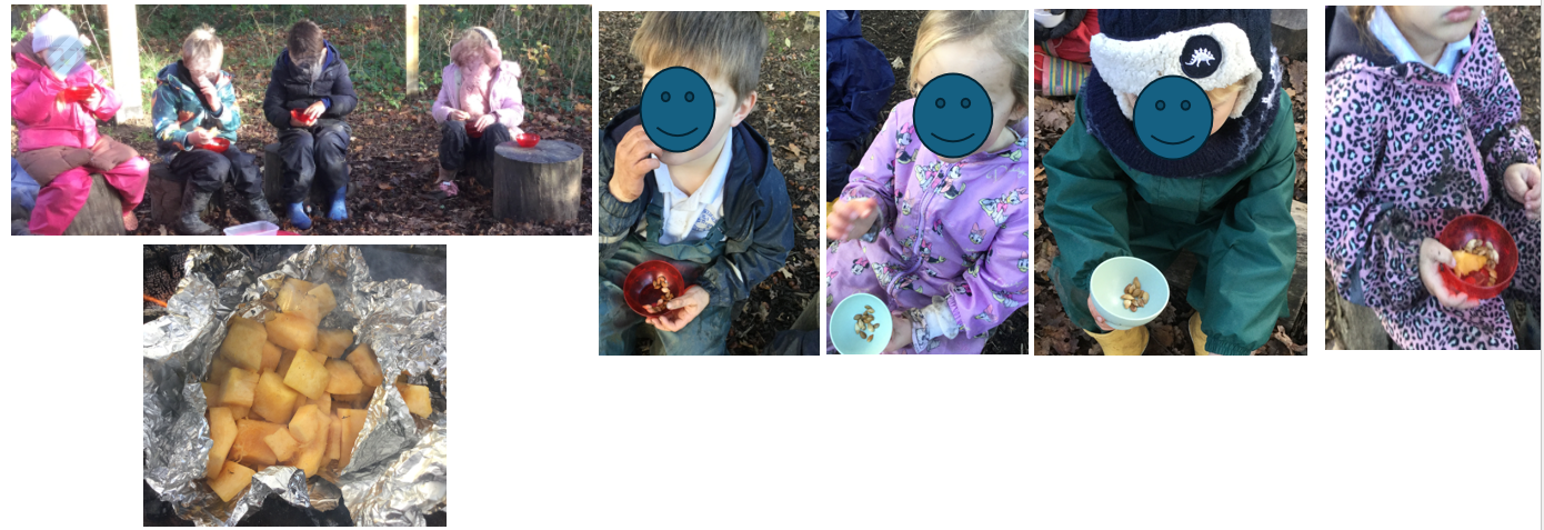 At the end of the sessions, everyone gathered to eat their yummy, sweet and hot baked apples. They loved them and were proud that they had used the apples they had picked. They enjoyed smelling and tasting them and discussed the different textures.