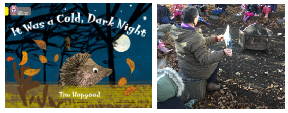 Mrs Dear read them the story "It was a cold, dark night", which is all about Ned the hedgehog trying to find somewhere to sleep for the winter.