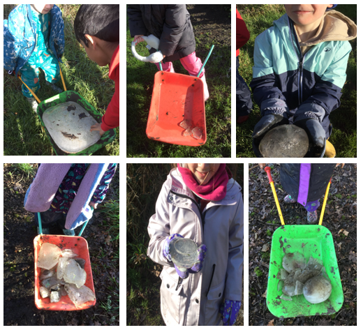 Wednesday brought an icy start to the morning. The children of Robin class turned into enthusiastic ice explorers—searching for the biggest chunks, breaking them apart, and transporting their finds across the site. The challenge of “Who can find the largest piece?” added an extra spark of fun!