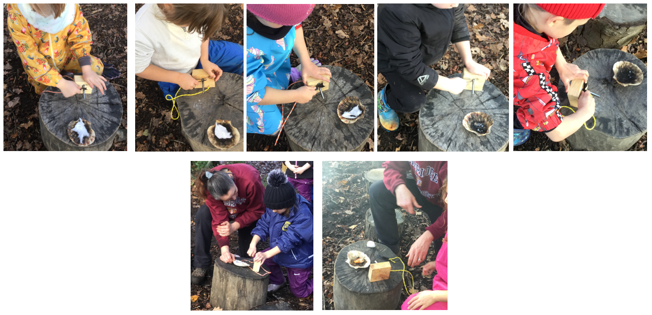 Quite a few children choose to practise their fire striking skills with Mrs Dear. They had to use strength to create a spark using the fire steels and then had to persevere to make the spark catch the cotton wool.
