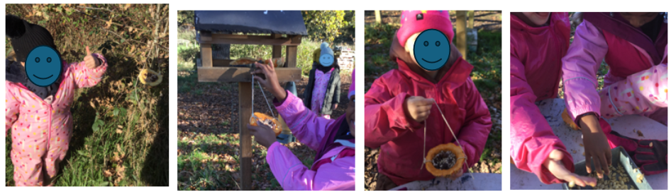 loween pumpkins from the local community which otherwise would have been thrown away. She supported children in turning these into bird feeders. The children discussed why we need to start feeding the birds in the Autumn and why we should not leave pumpkins on the floor in the woodlands.