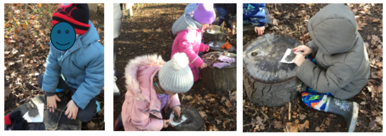 They also loved playing with the water in the natural pond; playing in the mud kitchen; bug hunting and experiencing the swing. Some children choose to do some drawing of things that they found (or might find) around the site).