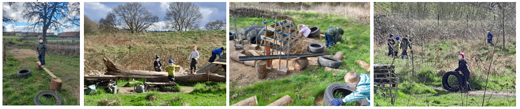 Amongst many different forms of free play, Mrs Dear observed one group of children making a seesaw and heard their independent risk assessment discussions: “be careful – I don’t think it is safe yet!”; “We need a team to help make it safer!”; “we need 4 people to lift that,”; “let’s be builders and build a park!”