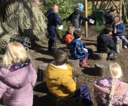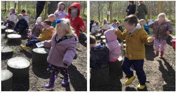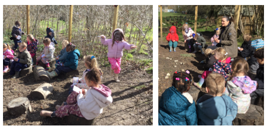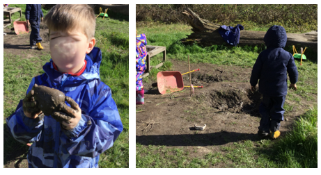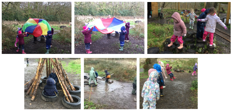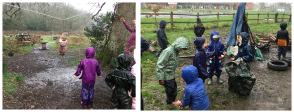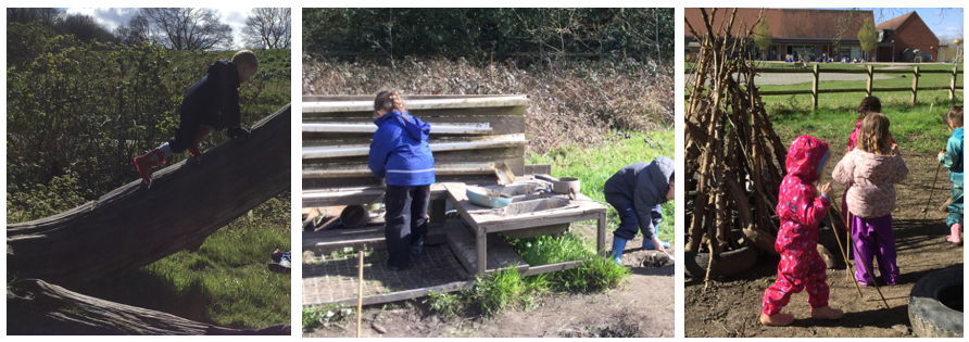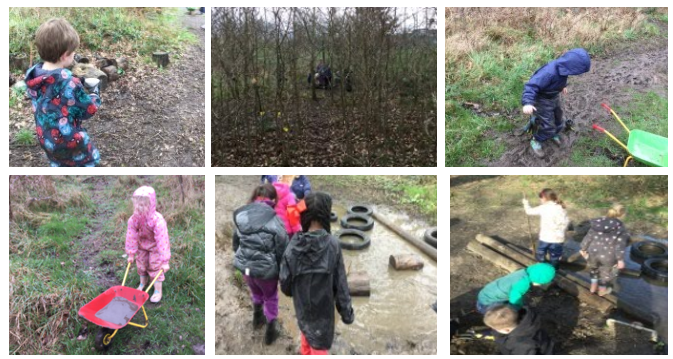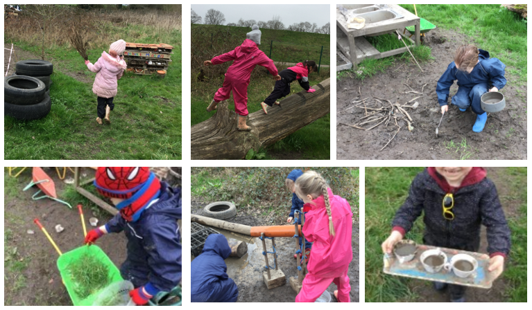 The children then enjoyed plenty of free play, including using the mud kitchen and building dens.