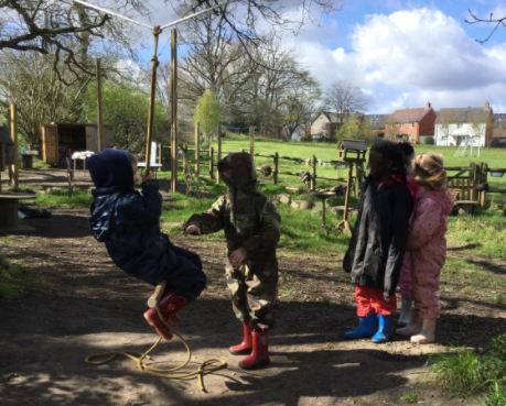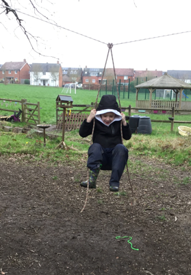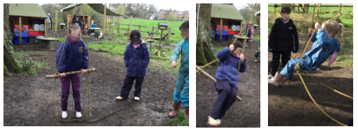 This week, Mrs Dear had also constructed a different type of swing with a single central rope. The children worked together to problem‑solve the safest way to get on and off the swing and had great fun discovering that it spins and turns more than a swing with two ropes.
