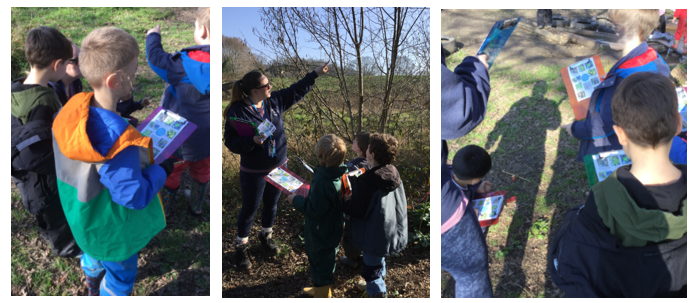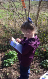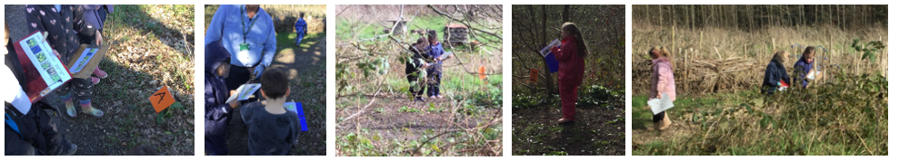 Their outdoor learning task was to carefully observe and match photographs of plants to the real plants found on site. They also observed that the hazel trees no longer had catkins.