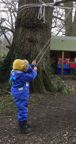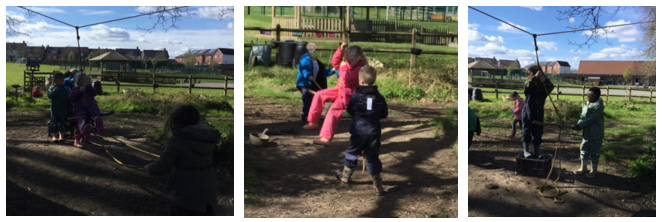 Mrs Dear put the swing up today and the children loved it! They played safely together and enjoyed the way a rope swing can go in all different directions. Playing on a swing helps develop the children's core muscles.