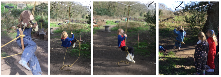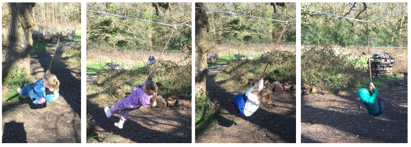 The rope swing was very popular, with the children enjoying how it could move in all directions. This week, Mrs Dear had created a more familiar swing, which had a branch as seat.