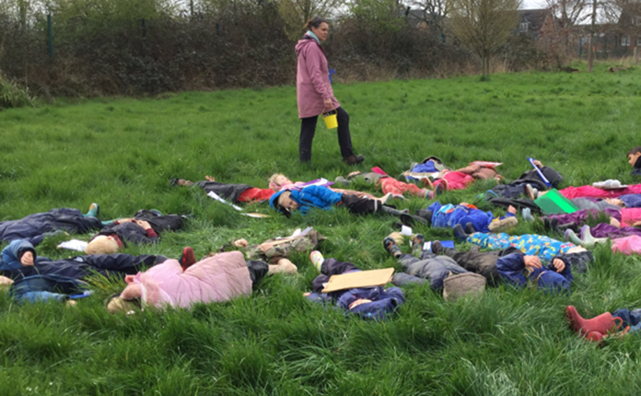 As the activity came to an end and the children had successfully located all the trees, Mrs Dear invited them to lie on the lush grass, close their eyes and relax. She guided the children through a short mindfulness activity, encouraging them to focus on how the grass and breeze felt, as well as what they could see, smell and hear. Although some children initially found it difficult to settle, with time every child was able to relax and engage in the mindful moment.