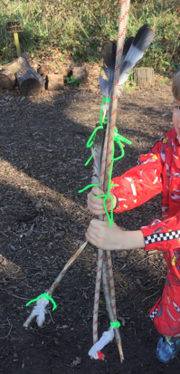 Over this half term, some of the children in Year 2 have been working on a project to create a flag. This started with dying their piece of fabric with blackberries, then whittling their sticks. This week the children completed their flags by drilling holes (using a power drill) through their stick and attaching their fabric with string.