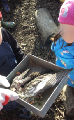 The children who chose to look at it discussed possible causes of death, applying their understanding of predators, prey, and Mrs Dear explaining decomposition. They decided not to bury the pigeon so it could become part of the food chain for another species.