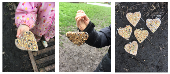 As an optional activity, continuing the bird theme from recent weeks—and with Valentine’s Day approaching—the children could create a heart‑shaped bird feeder using lard and bird seed.