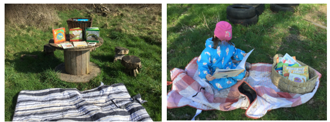 To encourage the children to read in nature, some areas were set up with picnic blankets and a range of fiction and non-fiction nature-themed books and magazines.
