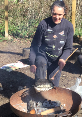 While the children went off to play, Mrs Dear cooked more popcorn in a saucepan over the fire, which was shared and enjoyed by everyone at the end of the session.
